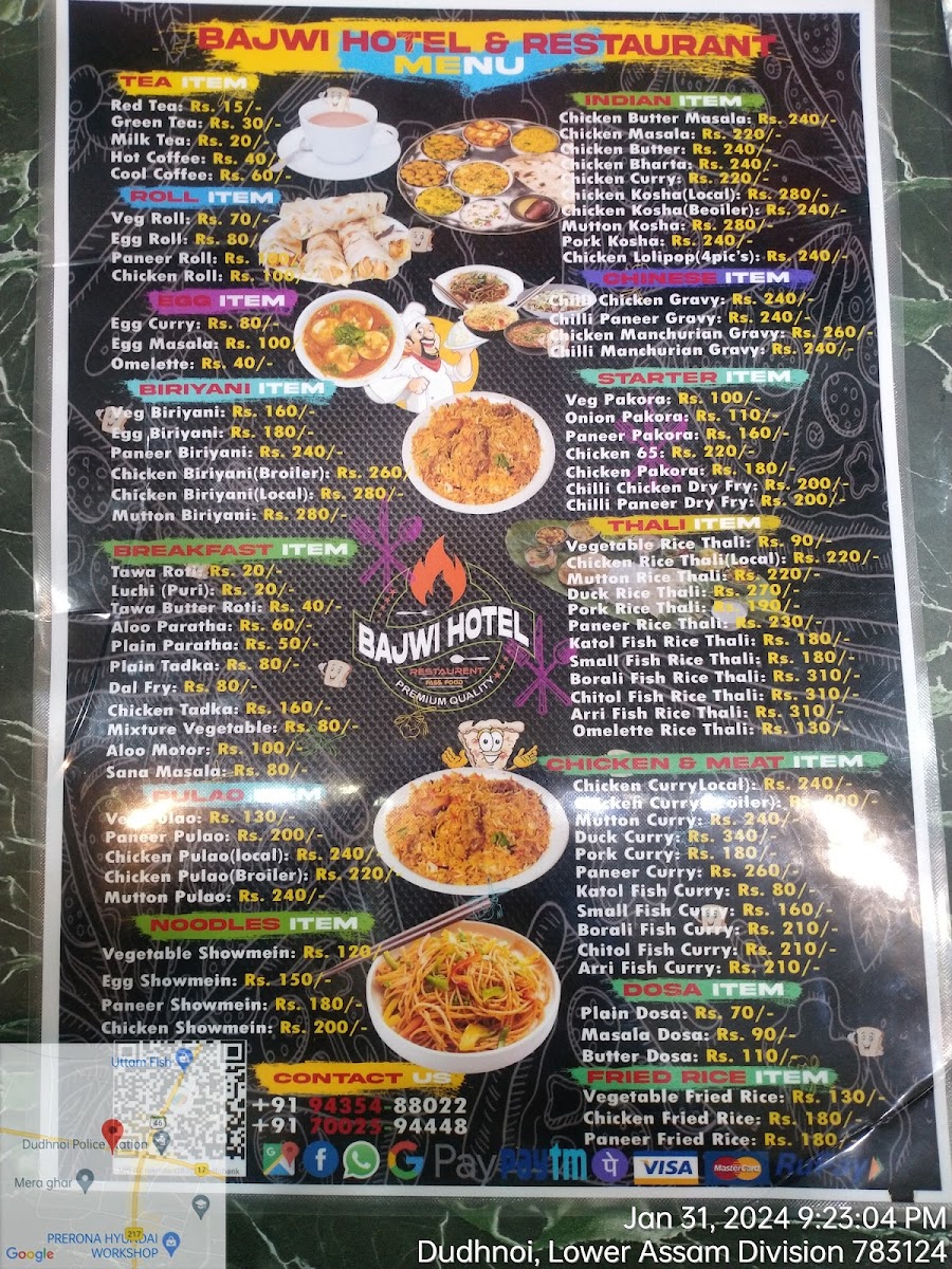 Located at Dudhnoi Bus Stop along NH 37 in Assam, Bajwi Hotel stands out as a culinary gem distinguished by its vibrant array of authentic local dishes. The restaurant features a comprehensive menu including a delightful buffet service and fast-food options, catering to diverse palates.